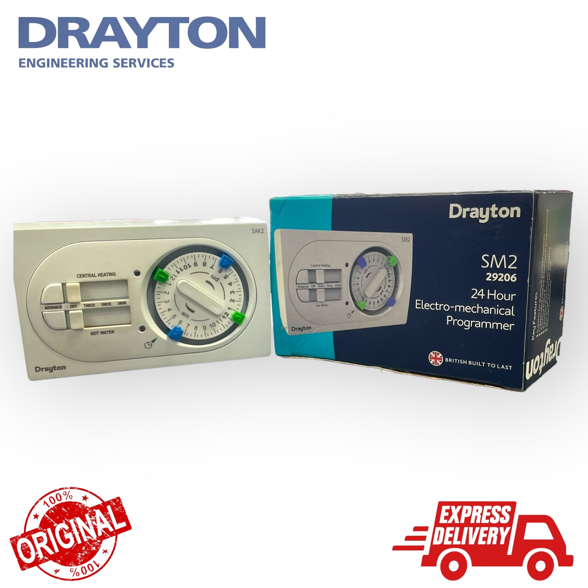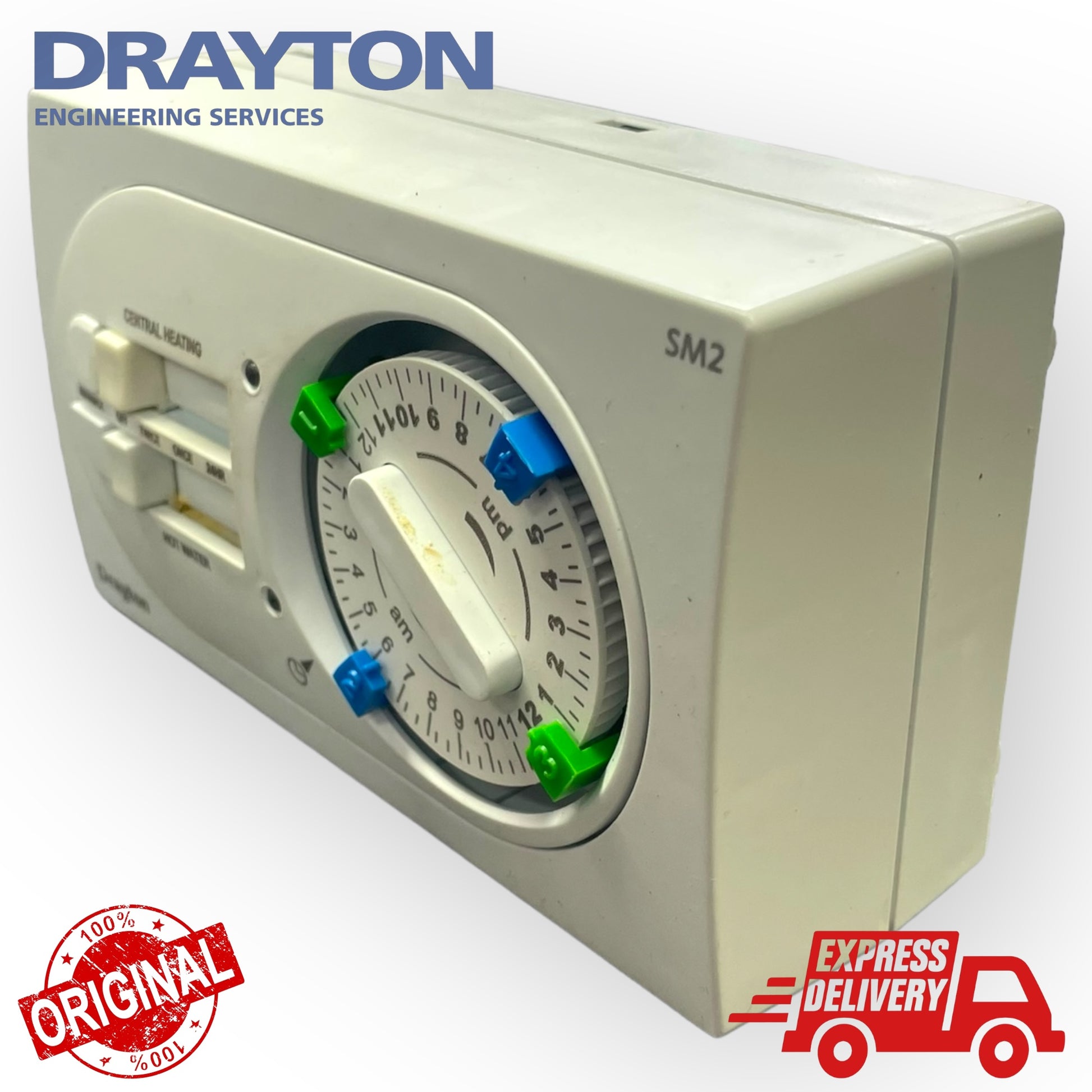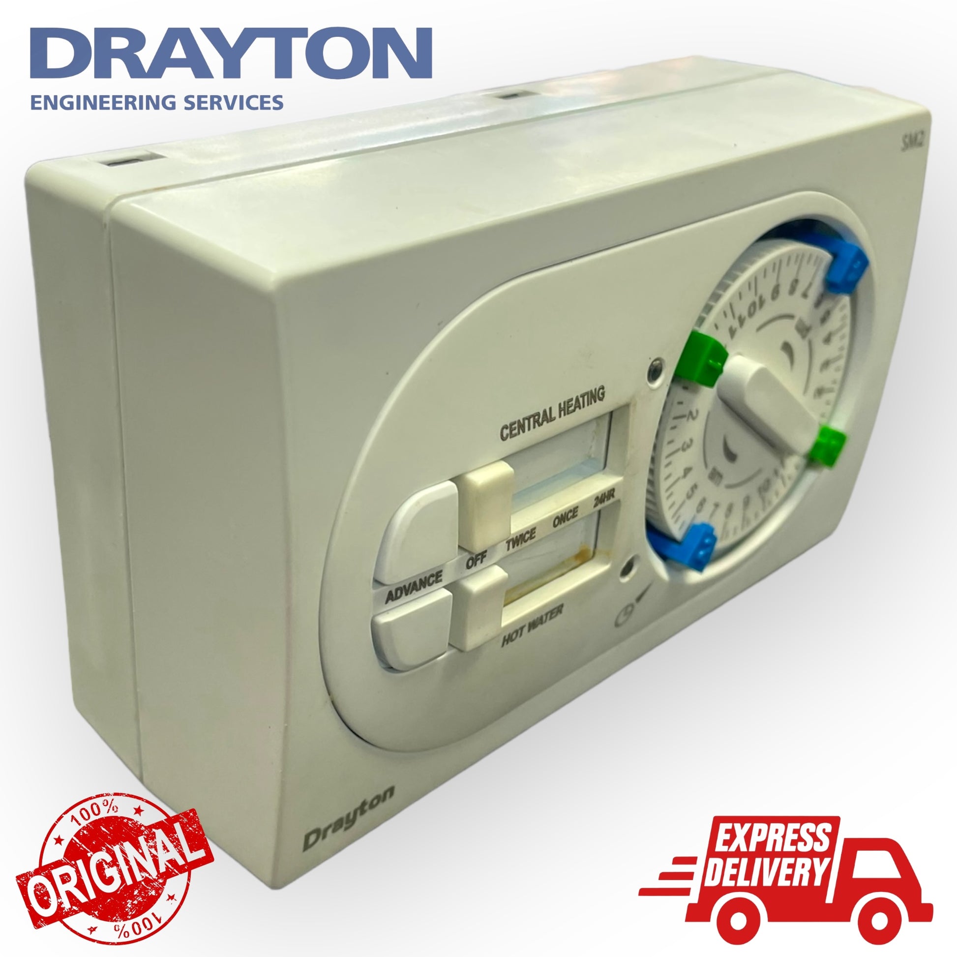 The Drayton SM2 dual channel electro-mechanical programmer gives style and ease of use to suit most domestic pumped and gravity heating systems.